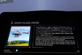 映像コンテンツを視聴できるFuture Zoneにもコンテンツが追加された。JALグループの未来に向けたチャレンジ「奄美アイランドドローンの取り組み」「空飛ぶクルマの取り組み」を美しい映像を通して知ることができる。