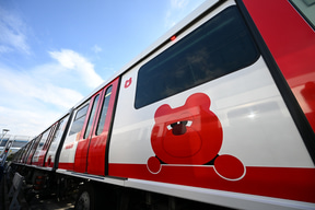 車両の側面全面にオリジナルデザインを施しており、片面はクラブカラーである黒と赤を基調にアルバルク東京を象徴するクールなデザイン。もう片面はマスコット「ルーク」がモチーフのかわいらしいデザインに仕上げた。