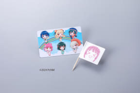 ノベルティには、6名のミニキャラを描いた「オリジナルカード」(1種)と璃奈ちゃんボードをイメージしたオリジナルランチ旗「璃奈ちゃんフラッグにっこりん」を封入。