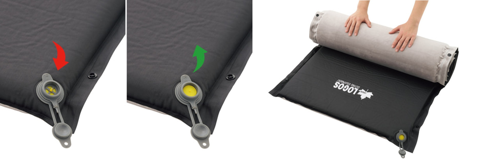 ロゴス、自動で膨らむリバーシブルマット。55mmの厚手、W生地でオールシーズン対応