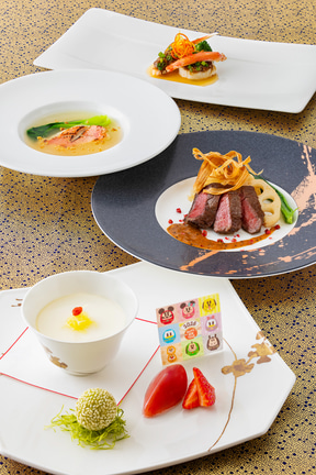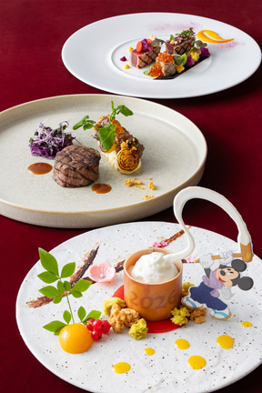 ディズニーホテルでは、12月26日~2026年1月12日に、年末年始の華やかな雰囲気が感じられるスペシャルメニューを用意する。前菜におせちの要素をとり入れたコースや、縁起のよいとされる食材(金目鯛やイセエビ)などを使ったディナーまで贅沢なひと時が過ごせる。