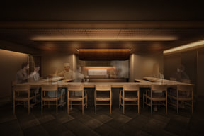 1階はバーとして、日本の風土を感じさせる和酒を中心に親しみやすいカクテルなどを提供。2階の割烹では、日本各地で出会った食材などを使って、それぞれの土地に根ざす文化や日本の四季を反映した料理をモダン割烹として提供する。