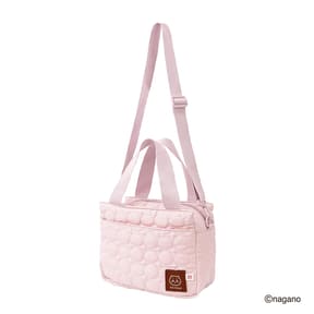 手持ちと肩掛けの2通りが使えるキルティングバッグ。ちいかわはくすみピンク、ハチワレはくすみブルー、うさぎはくすみイエローを基調としており、よく見るとそれぞれのキャラクターの顔型が隠れた生地もポイントになっている。