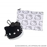 特別付録は、ハローキティの顔をモチーフにした真っ黒なポーチと、キティがたくさん描かれた白黒デザインのリップストップポーチの2個セット。