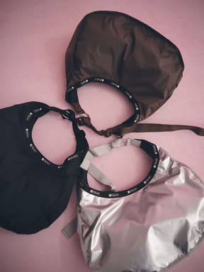2025秋冬シーズンのコラボは、ユニセックスでも使用できるスポーティーなボリュームバッグと、モードなスタイルに上品さをプラスしてくれるハーフムーンバッグを別注制作したほか、ホリデーシーズンのギフトにもちょうどいいポーチやミニバッグを含む全5型をラインアップ。レスポートサックならではの軽量で耐久性の高い造りが特徴となっている。