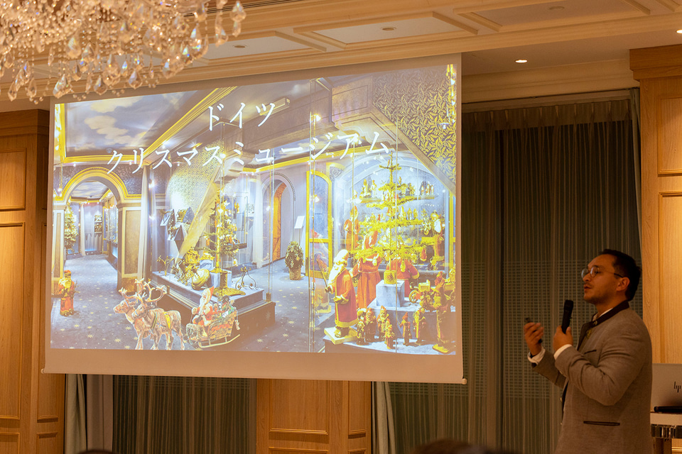 ドイツといえば「クリスマスマーケット」も有名だ。ケーテ・ウォルファルトからはTakuma Wohlfahrt氏が登壇し、1964年から家族経営で続くケーテ・ウォルファルトの歴史を語った。ケーテ・ウォルファルトではクリスマスシーズンにドイツ国内のクリスマスマーケットで屋台を出店するほか、ローテンブルクの本店クリスマスビレッジなどでは1年中クリスマスの雰囲気を楽しめる。ちなみに今年は東京、名古屋、大阪で開催するクリスマスマーケットにも屋台を出店する。