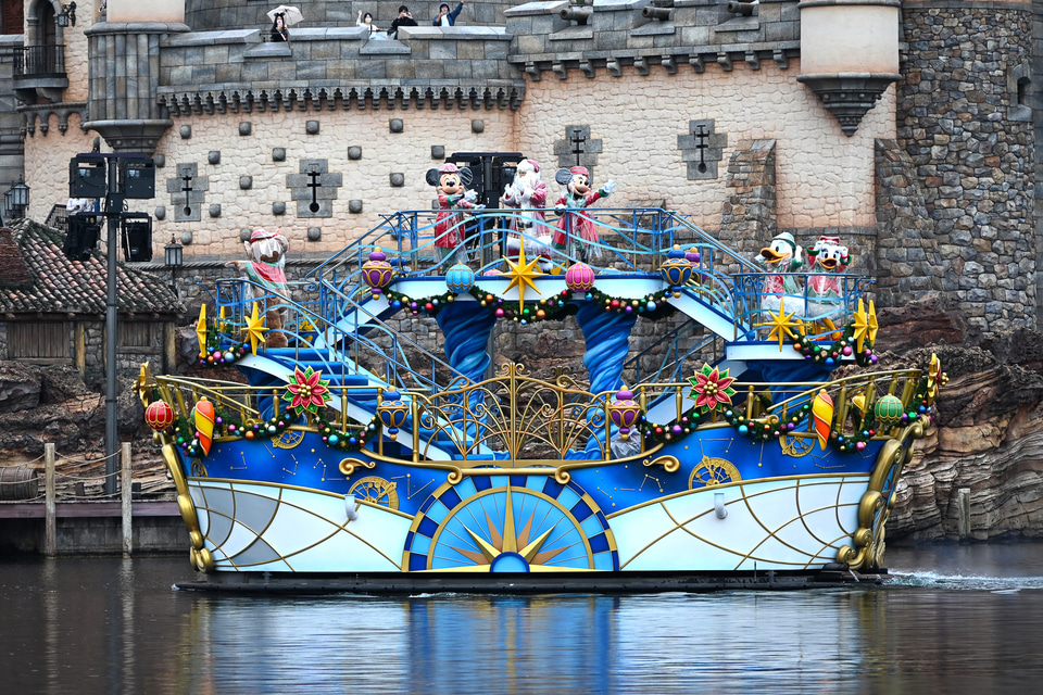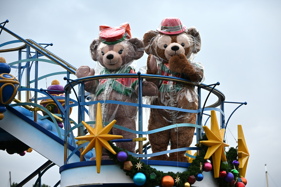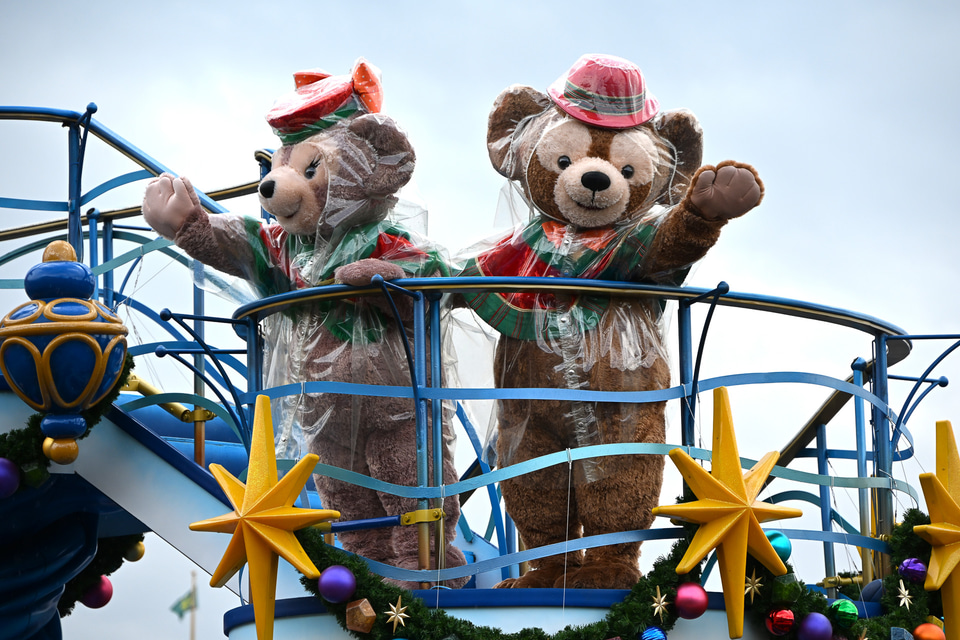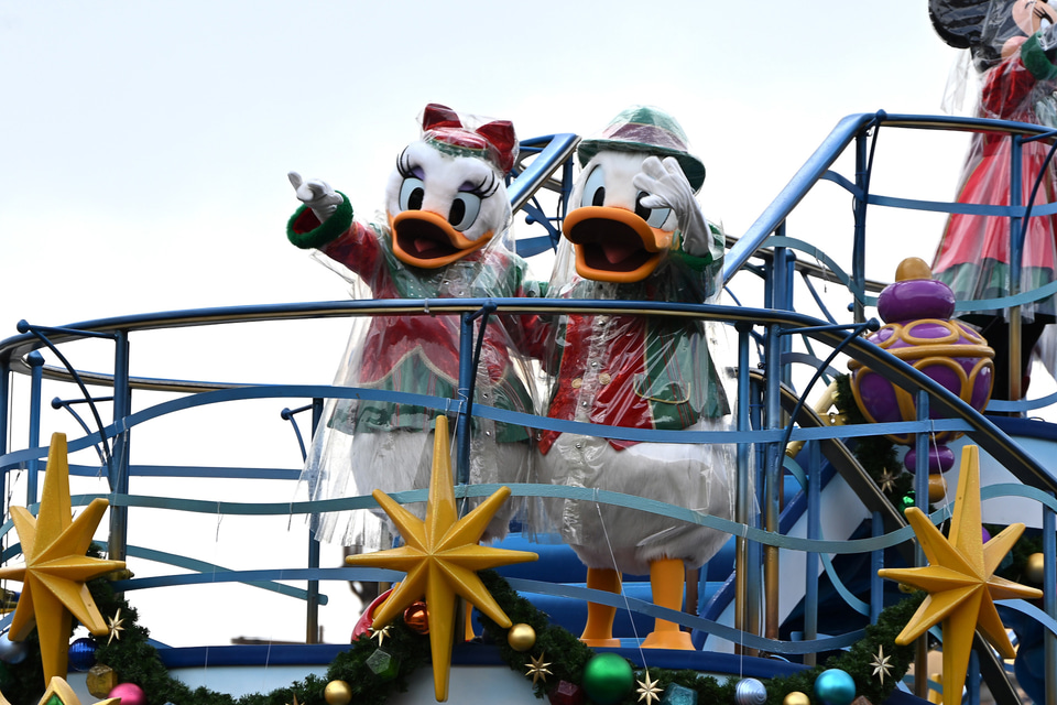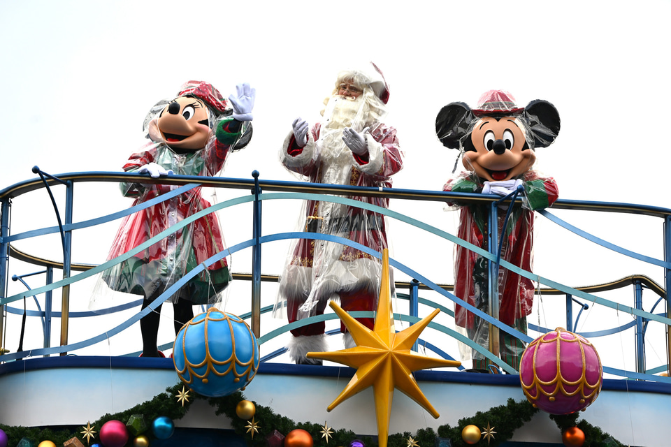 雨バージョンの「ディズニー・クリスマス・グリーティング」を見てきた。ミッキー・ダッフィーたちがレインコート姿でご挨拶