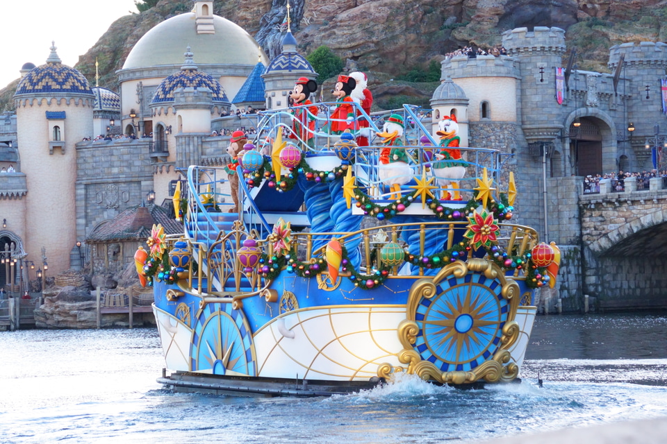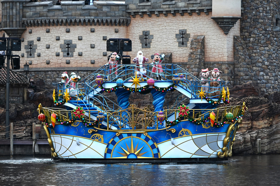 メディテレーニアンハーバーにて行なわれるハーバーショー「ディズニー・クリスマス・グリーティング」では、ミッキーマウスとミニーマウス、ドナルドダック、デイジーダック、ダッフィー、シェリーメイといった仲間たちが、クリスマスソングとともに船の上からゲストにご挨拶。グリーティングにはサンタクロースも参加し、クリスマス気分を盛り上げてくれる。