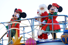同日夕方に行なわれた2回目公演は快晴に。通常バージョンではみんなでクリスマスソングに合わせてポーズを決めたり踊ったり、見どころ盛りだくさん。最後は全員が中央のステージに集まり、ミッキーが「みんなのおかげで最高のクリスマスになったよ!」と感謝を伝えた。
