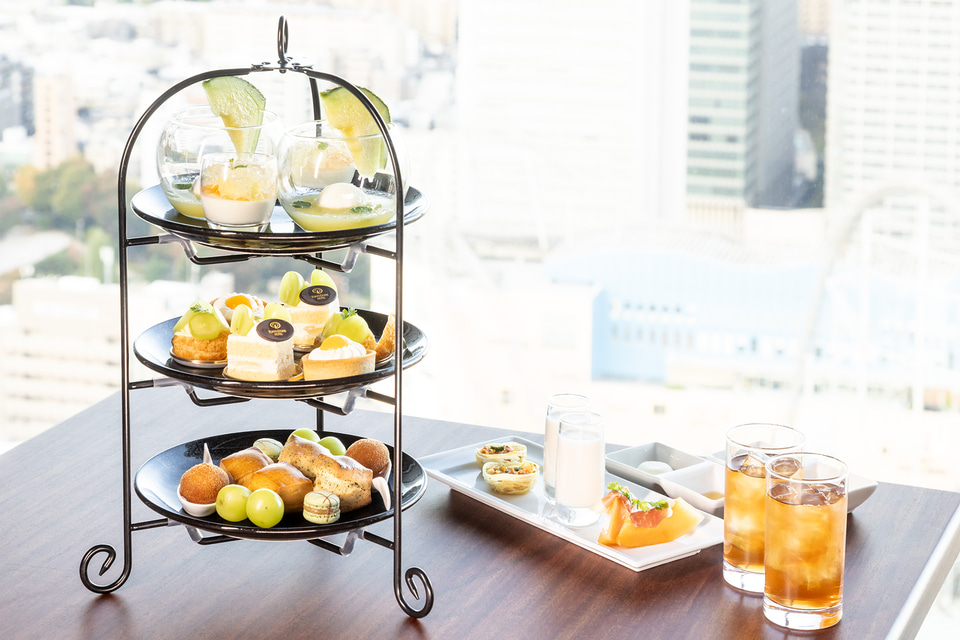 甘いもの好きおじさん、東京ドームホテルでシャインマスカット&メロンのアフタヌーンティーを食べる