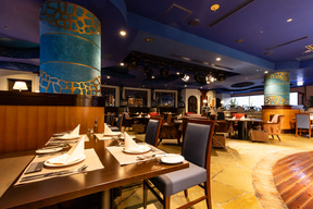 ホテルのエントランスからエレベーターで最上階へ。エレベーターフロアの先がアーティスト カフェだ。入口からスタンディングバーの横を通って客席へ。広いフロアにはノースダイニング、サウスダイニング、バルコニー、センターラウンジと、人数や目的に合わせたさまざまなタイプが用意されており、今回はノースダイニングの窓側に着席。この43階フロアは地上150mとのことで、東京ドームや東京ドームシティ アトラクションズ、遠くには池袋の高層ビル群などが見渡せる。しばし、その絶景に見蕩れてしまった。