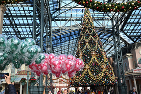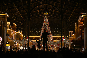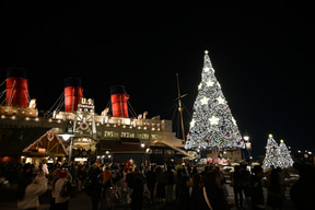 東京ディズニーランド、東京ディズニーシーでは、巨大なクリスマスツリーがそれぞれ登場。ともに約15mと遠くからでもしっかりと場所がわかるほどの存在感だ。