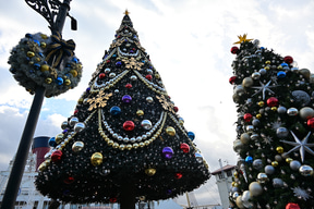 約15mものクリスマスツリーは昼も夜もベストフォトスポット