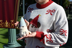 「ディズニー・クリスマス」の人気キャラクターといえば、クリスマスの妖精「リルリンリン」。今年も昨年に続き、彼らがパークを訪問中。身につけグッズをはじめ、コレクタブルアイテムなども多数用意している。「カチューシャ」(2400円)に、「セーター」(7000円)、そして「ぬいぐるみバッジ」(2500円)と全身を「リルリンリン」コーデも叶う。