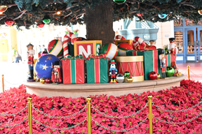 さらに、メディテレーニアンハーバー周辺には、イルミネーションが施されたツリーのデコレーションが新登場。赤いポインセチアが一面にびっしり植えられ、ゴールドに輝くツリーとのコントラストを際立たせている。