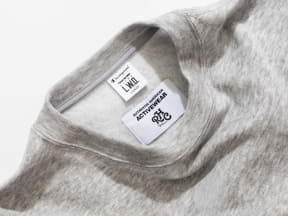 軽量性、断熱性、速乾性を持つポリプロピレン100%の機能裏起毛素材を使用したChampionの「ULTRA L.W.D.」シリーズに、RHCらしさを取り入れたアイテム。疎水性(水をはじく性質)にも優れるポリプロピレンをスウェット生地に編み立てるという画期的な発想から開発した。