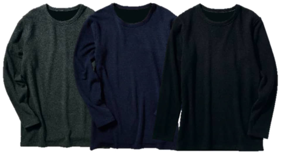 同シリーズは、内側に微起毛を施すことで熱を奪いにくくし、着た瞬間の冷たさを軽減する「接触温感」と、肌から出た湿気を吸い発熱する「吸湿発熱」を組み合わせることで、さらに暖かく着られるように仕上げたもの。