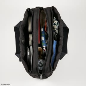 口が大きく開き、収納部は3層に分かれているため整理しやすく、スムーズに荷物を出し入れできる仕様になっている。