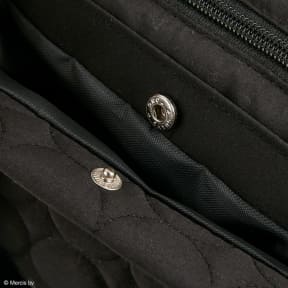 丸形キルティング生地に、もこもこミッフィーをワンポイントでデザインした大人かわいい2WAYショルダーバッグ。普段使いにちょうどいいサイズ感で、約30.5×9.5×20.5cm(幅×奥行×高さ)。