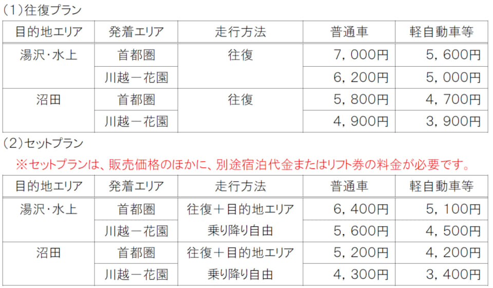首都圏から新潟・群馬を目的地とした往復利用がお得になる「往復プラン」と、別途料金で宿泊またはスキー場リフト券を利用することで往復+目的地エリア内が乗り降り自由となる「セットプラン」を用意している。利用期間は両プラン共通で、12月1日~2026年4月23日(年末年始・3連休を除く)のうち、連続する最大3日間。