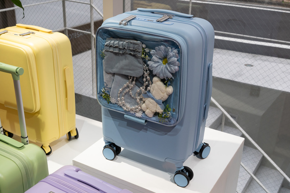 イベントやコンサート会場などでの推し活において、あえて中身の見える透明なバッグに缶バッジやアクキー、ぬいぐるみを詰め込む「痛バ」はめずらしい光景ではなくなったが、それをスーツケースで実現したのが本製品。