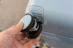 背面のスイッチでロック/アンロックを素早く切り換えられるキャスターストッパー、内装を取り外して丸洗いできる「Washtec(ウォッシュテック)」のほか、OSHINO同様にスマホホルダーとコンビニフック付きの伸縮式ハンドル、充電用のUSB Type-A/Cポートなど充実の装備を備えている。