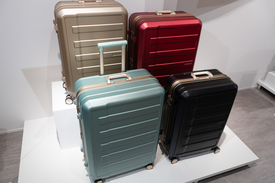 定番モデル「5088」をリニューアルした「NEXIS(ネクシス)」は、衝撃に強いアルミフレームに軽量な3層ポリカーボネートボディを組み合わせたスーツケースで、約70LのMサイズ(3万1680円)と約90LのLサイズ(3万4980円)のラインアップ。カラーはブラック、グリーン、シャンパンゴールド、レッド。