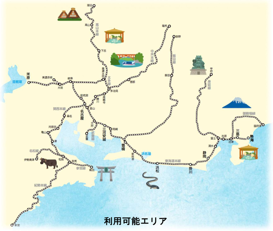 夏季に発売したお得なフリーきっぷが冬季も発売決定。価格は大人3900円、小児1900円で、熱海~米原間の各駅着となる東海道新幹線のきっぷをEXサービスで購入した人のみ利用できる。きっぷはEXサービスのログイン後に表示される、JR西日本ネット予約「e5489」のリンク先で取り扱う。
