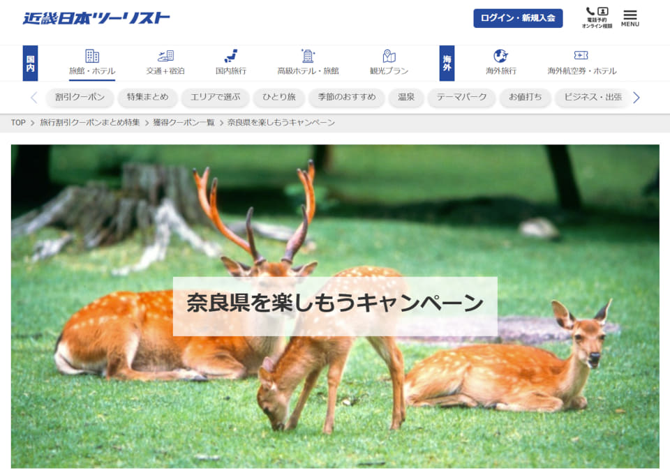 奈良県の宿泊プラン1人最大5000円引き。近ツー予約サイトで3月末まで