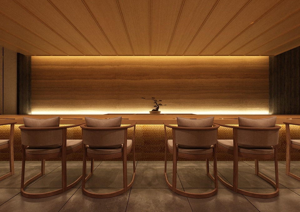 食事は、かつて提供していた薪火焼き料理を復活(約100席)。さらに、個室利用が可能な高級鮨屋をサブダイニングとして新設(約10席)し、和洋選べるようになる。