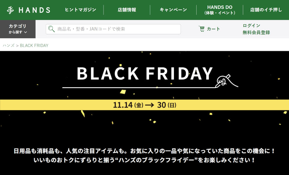 ハンズは、お得な商品を取り揃えた「ハンズのブラックフライデー」を本日11月14日から店舗・オンラインストアで開催している。
