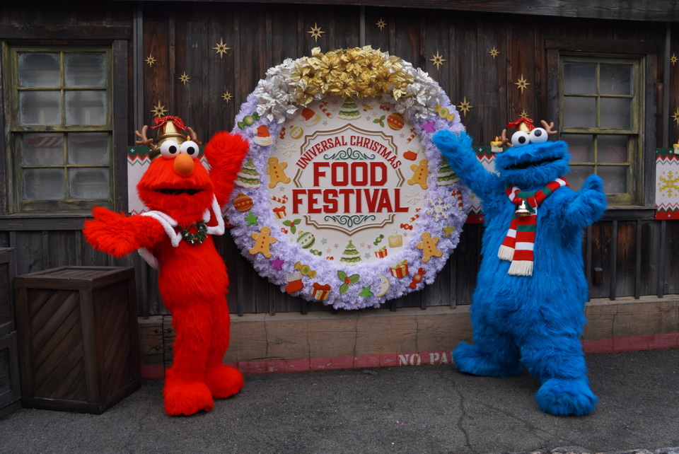 USJ、クリスマス初のフードフェスティバル開催中。ハローキティ/スヌーピー/エルモがサプライズで登場!