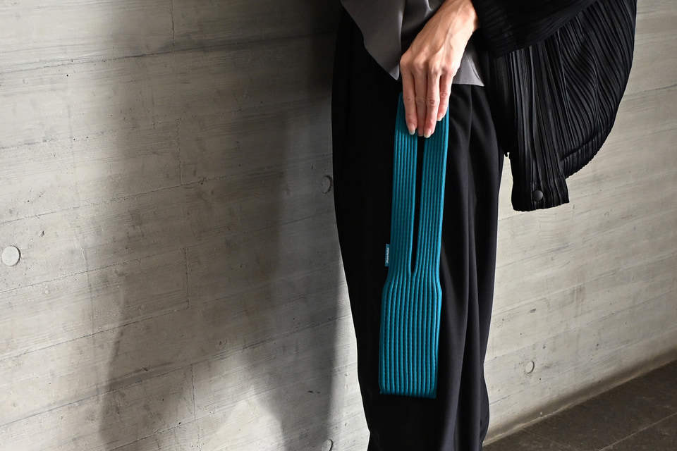「iPhone Pocket」は、オリジナルの立体成形で編み上げたリブメッシュ構造を採用したニットアイテムだ。iPhoneシリーズをはじめさまざまな小物を入れることができ、するりとスムーズに出し入れできるうえ、ニットが形状に合わせ自在に広がりぴったりとフィットする。実際に手にすると分かるが、想像以上に厚手でしっかりとした作りは保護という部分も担う。と同時に、華やかなカラーリングと、他社が追随できぬ製法と質感でイッセイミヤケの美学がしっかり息づいていることに気づくのだ。