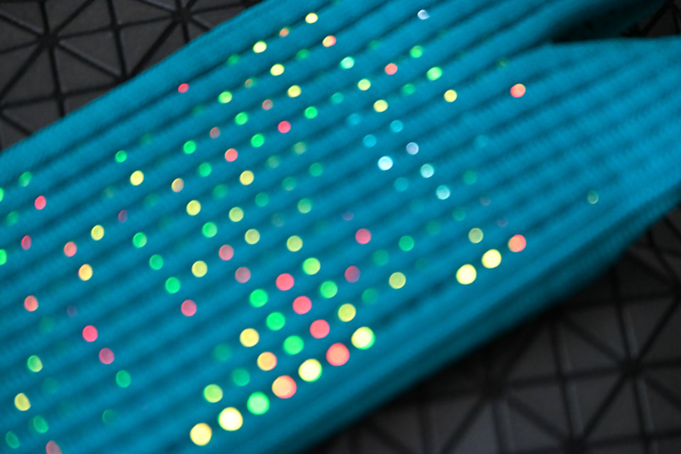 そして、デバイスとの融合をより感じるのが暗い場所での使用時。適度に広がったリブの間から光が漏れ、近未来的な表情を見せるのだ。ハッとするほどの美しい情景は、思わず見惚れてしまうほど。あらゆるシーンで美しくiPhoneたちを身に着けられるのが「iPhone Pocket」なのだ。まさにAppleとイッセイミヤケのコラボだからこそ実現しえたことではないだろうか。