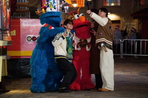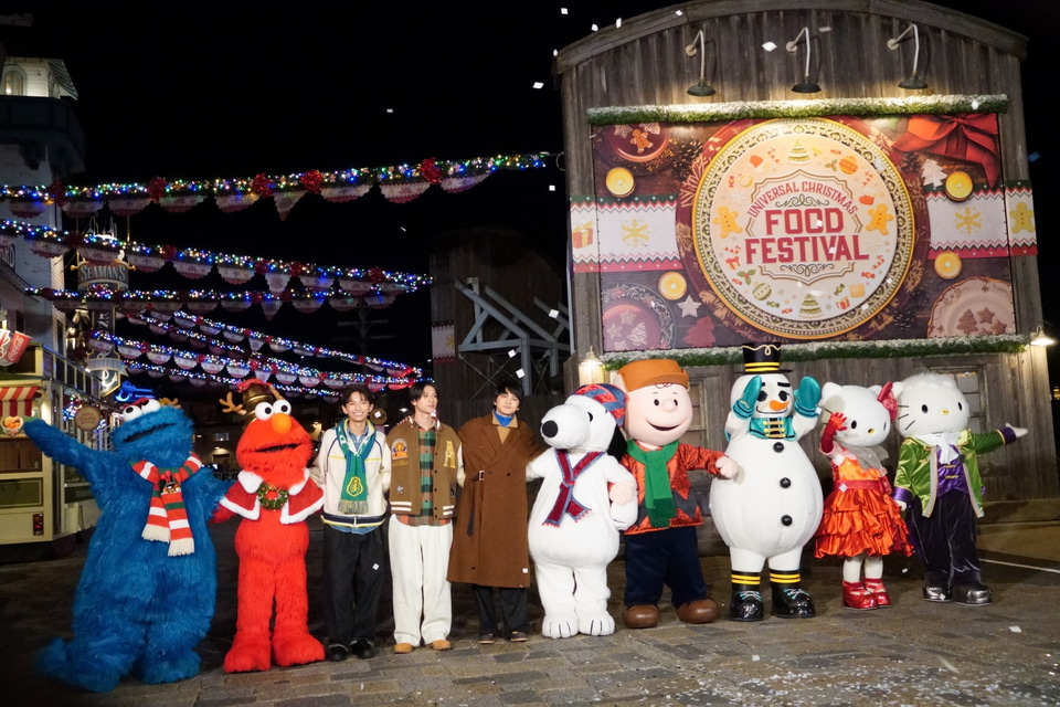 セレモニーには、ブランドアンバサダーでパーク初訪問となる北村匠海さん、同じ事務所の後輩であるダンスボーカルユニット「ICEx(アイス)」阿久根温世さん・竹野世梛さんが登場。限定メニューのチュリトスを食べたり、エルモやクッキーモンスターとセルフィーを楽しんだり、「ユニバーサル・クリスマス・ジョイ」を一足先に体験した。
