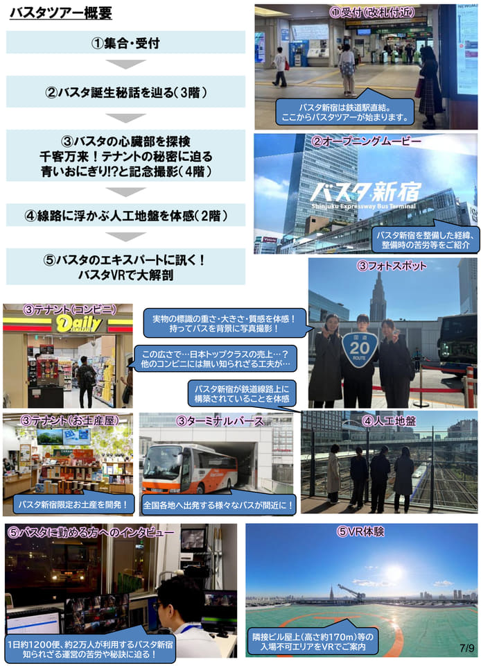国土交通省が推進するインフラツーリズムとして、「バスタ新宿大解剖!知られざる探求ツアー(バスタツアー)」を実施する。バスタ新宿の歴史やテナント、人工地盤に関する解説が受けられ、スタッフから運営にまつわるエピソードも聞けるという。