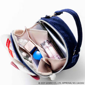 コームやハンドクリーム、ミントタブレットなど、お出かけの必需アイテムをひとつにまとめられる絶妙なサイズ感に加え、リップや目薬などを立てて収納でき、バッグの中でモノを失くしにくい仕様になっている。また、絆創膏やヘアピン、常備薬などの小物を入れるのにちょうどいいポケットが顔の裏側にも備わる。