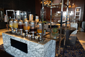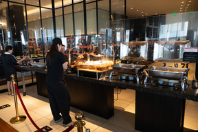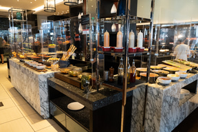 特筆すべきはビュッフェレストランの「カサ オセアノ」で、朝食・ランチ・ディナーのほか週末はブランチも可能なオールデイダイニング。席数は236席(+2つの個室)で、収容人数の多さに対してテーブル同士の間隔が広めに作られているので、好きな料理をたくさん並べてゆったり楽しめる。