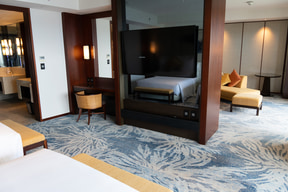 内訳は、スタンダード210室、クラブルーム68室、スイート62室となっており、2つのダイニング、3つのバー、ロビーラウンジやクラブラウンジ(クラブルーム以上の宿泊者向け)、インフィニティプールとキッズプールなど付帯施設も非常に充実している。