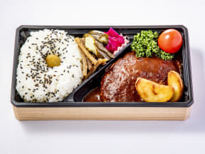 特徴: レストランで1番人気の味がそのまま駅弁に。国産牛豚肉のハンバーグと自家製デミグラスソース、新潟県産コシヒカリが相性〇。