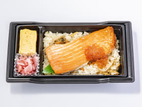 特徴: グランスタ東京限定。鮭ハラミ白醤油焼といくら醤油漬が楽しめる親子弁当。ご飯は山形県産米つや姫のあさり炊き込みご飯。