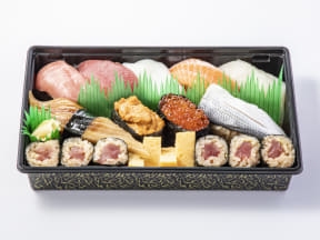 特徴: グランスタ東京限定。近大生まれのマグロ、近大生まれのマダイ、近大生まれのシマアジで、おめでたい紅白を演出。