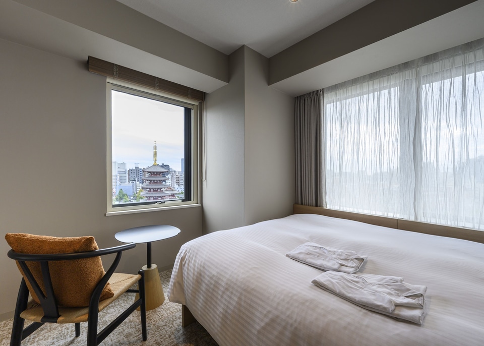 客室は全128室(モデレート、コーナーモデレート、ツイン、ユニバーサルツイン、コンフォートツイン)で、つくばエクスプレスの浅草駅から徒歩3分、東京メトロ銀座線の浅草駅から徒歩8分、都営浅草線の浅草駅から徒歩9分という立地。