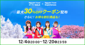 楽天トラベルは、旅行予約がお得な「楽天トラベル スーパーSALE」を12月4日20時~20日23時59分に開催する。
