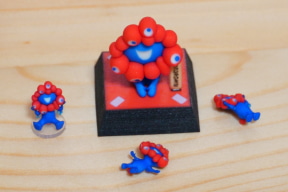 商品の製造を担当しているのは、ジオラマシートやコレクションケースで有名な「箱庭技研」。世界的にも非常にめずらしいという1100万色対応フルカラー3Dプリンターを使用し、いらっしゃいの場合は1セットを製造するのになんと10時間以上かかるとのこと!