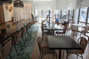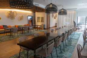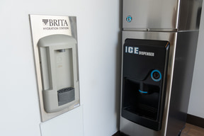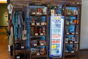 実はハイアット セントリック ワイキキ ビーチにはレストランがない。その代わりに1階にはテイクアウト可能な飲食店(後述)が充実していて、ロビー階には持ち帰った食事を取るための自由な着席エリアが広く用意してある。電子レンジや(カップ麺にも対応する)お湯と水の出るサーバーもあるので、時間を問わず気ままに食欲を満たすことができる。ちなみにフロントではカップ麺も販売していた。