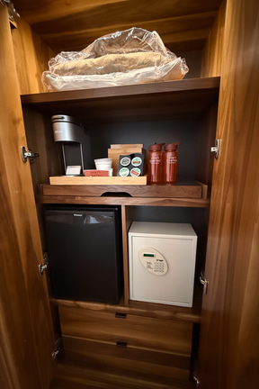 クローゼットのなかにはウォーターボトルが用意してあり、エレベーターホールの近くにウォーターサーバーが設置してあるので、24時間いつでも(ホテルを出ずに)飲み水を確保できる。実際、ハワイのホテルではこの形式はもう当たり前になっていて、空港からワイキキに着いたらまずはコンビニで水のペットボトルをまとめ買いして……という認識はもう古くなっている。