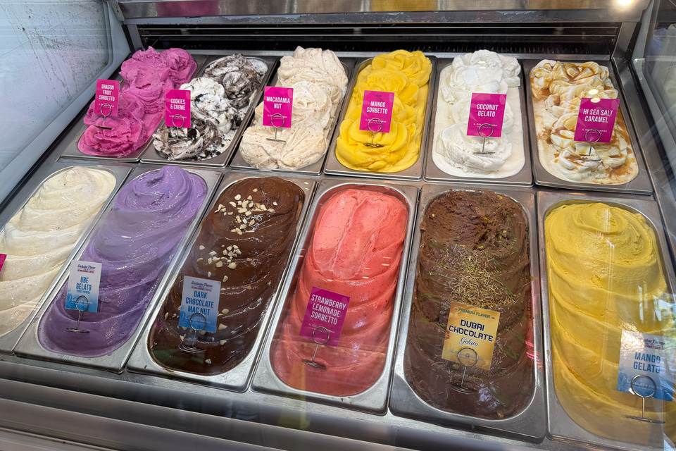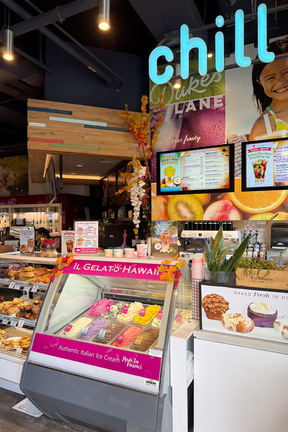 本命はABC Storeが手掛ける複合フードホールの「Dukes Lane(デュークス レーン)」で、テイクアウト中心のロティサリー&フラットブレッド、ジェラート、パンなど、1週間くらい滞在しても選択肢が尽きないほどのメニューがずらり揃っている。ABC Store本来の機能も含んでいるので、軽食や飲料、スナックなどの取り扱いはもちろん、アパレルや生活雑貨、スマホ関連アイテムなども用意している。
