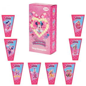今回主役となるミニーが思い描いた、ハートのミラーを覗いた先の世界「ミニーのファンダーランド」をテーマに、「ぬいぐるみバッジ」(2800円)や「光るおもちゃ」(1900円)、「ショルダーバッグ」(2500円)などの生活雑貨、お菓子といった商品が多数ラインアップしている。
