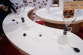 記者も実際に体験し、柑橘系のさわやかな香りとビスケットをかじったような音、平べったい円柱のシルエットを選んだところ、「ライム発酵のカカオを生かしたチョコレート」(490円)をお勧めされた。